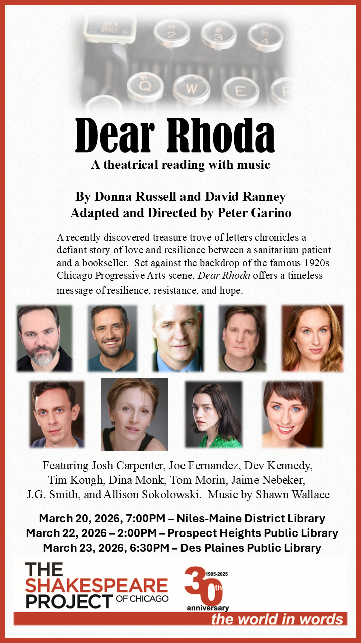 Sunday, March 22, 2026, 2:00PM, Prospect Heights Public Library https://www.phpl.info/event/shakespeare-project-performance-dear-rhoda-72997